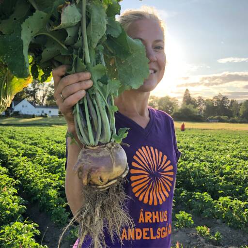 Som andelshaver i Århus Andelslandbruk får du være med i en stor og bynær grønnsaksåker, dyrket økologisk med omsorg for jordlivet, insektene og dyra. Vi har egen gartner som dyrker for oss, men du kan bidra på dugnader om du ønsker og har mulighet. Det kreves ingen forkunnskaper for å være med, her vil du lære mye underveis på dugnadene. Mange tror at andelslandbruk er parseller der hver enkelt dyrker sitt område, men andelslandbruk er et samvirke der vi dyrker en hel felles åker sammen, og hvor en gartner har det daglige ansvaret.