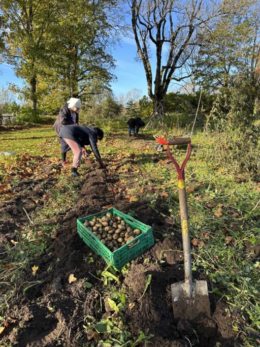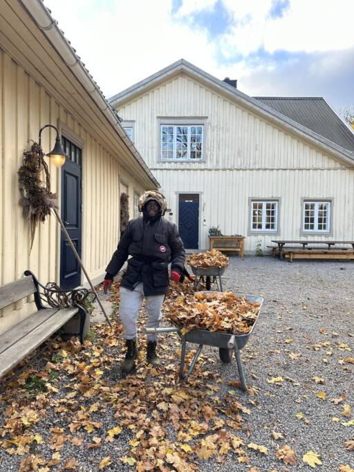 Gjennom året fikk flere deltagere i prosjektet Frø og røtter erfaring med arbeid gjennom dyrking. Det ble dyrket, sanket og laget mat på Århus gård som også ble en møteplass for felles måltider og utveksling av oppskrifter og erfaringer.