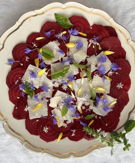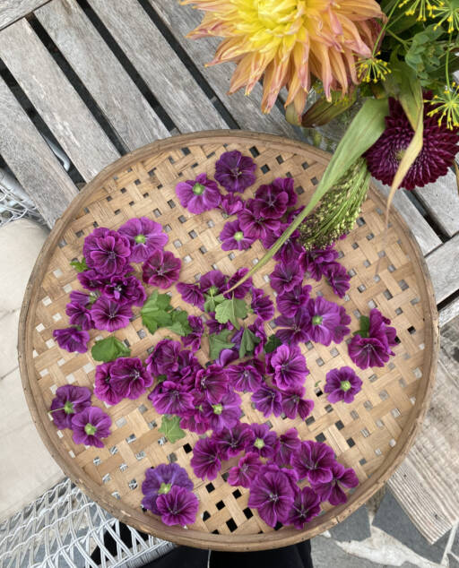 Vi har mange spiselige blomster i Århus Gård blomsterhage.