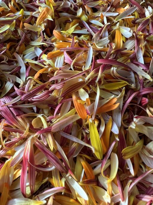 Eske med spiselige, hele tørkede og pressede blomster – kr. 300,- (må bestilles minst 3 uker før levering)